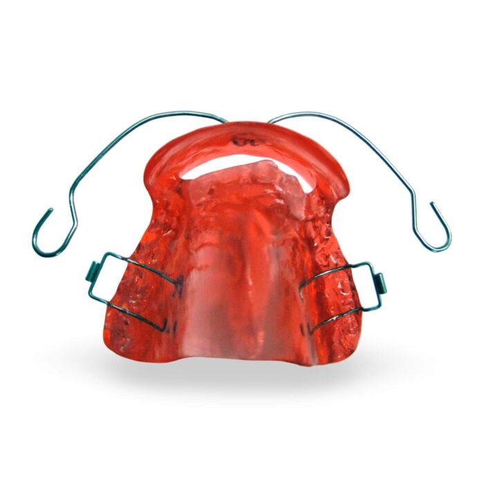 Stainless steel clasps help hold the device securely in place during wear, even when light tension is applied via the facebow.